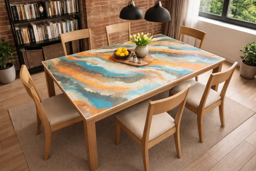 - Resina epoxi para mesas y piezas decorativas únicas.